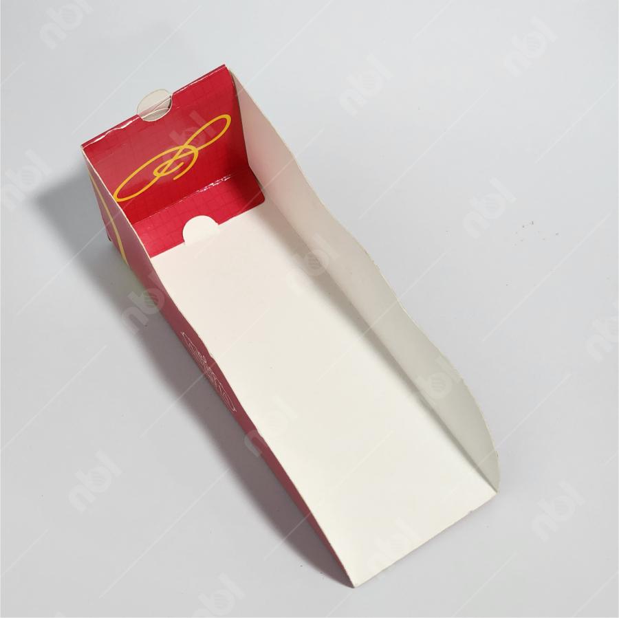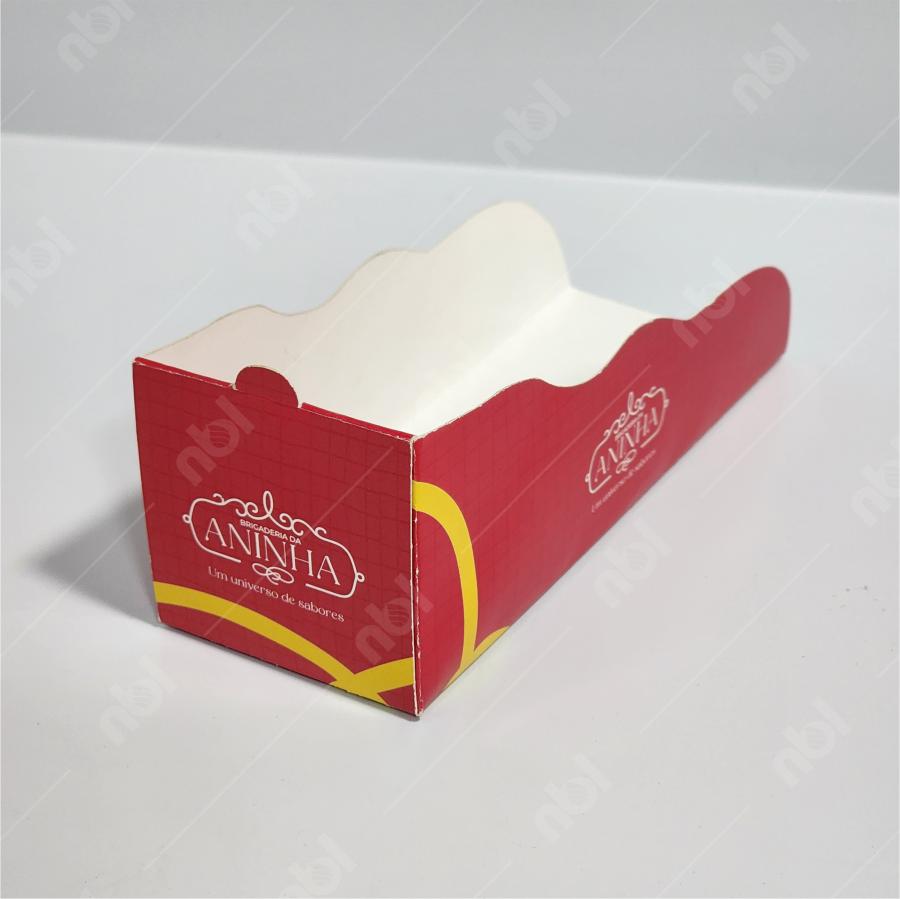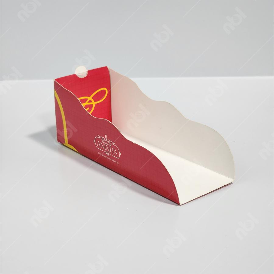 Embalagem tipo berço para hot dog, desenvolvida para oferecer praticidade no consumo e valorização da marca. Seu formato funcional facilita o manuseio, evitando sujeira e proporcionando mais conforto ao cliente na hora de comer. Totalmente personalizá