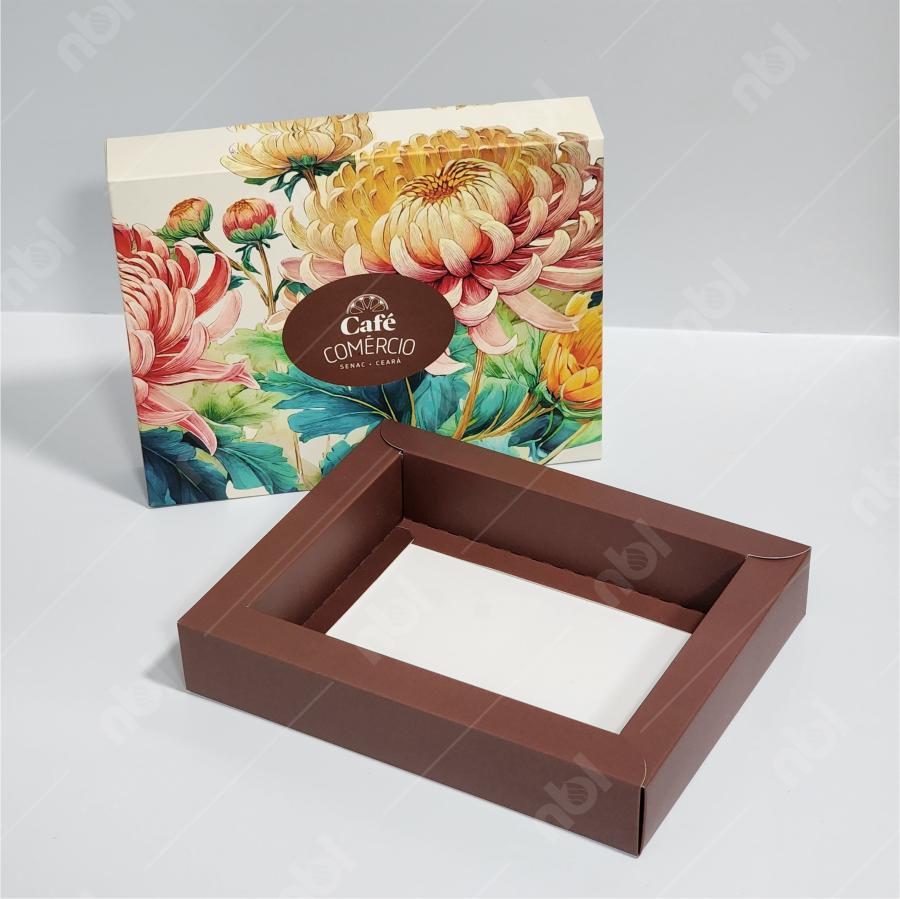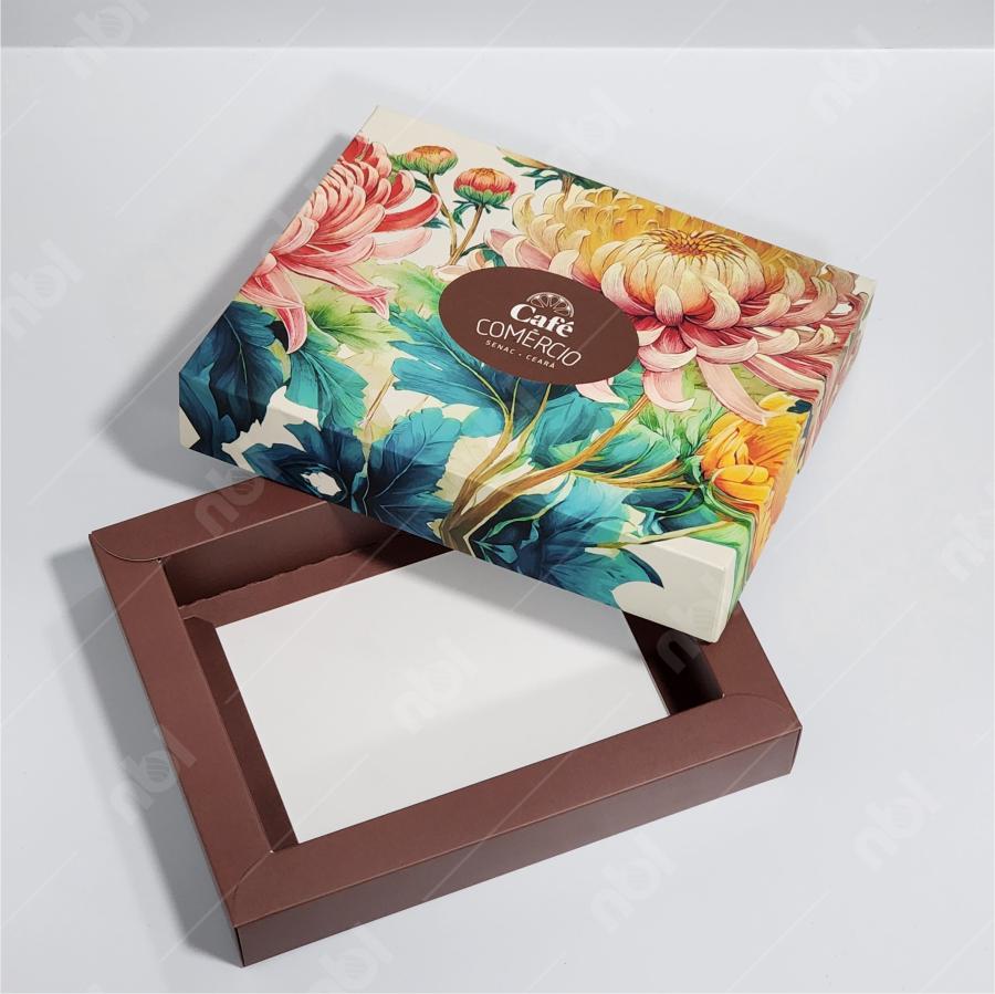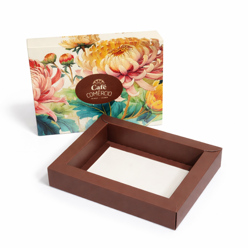 Caixa com tampa desenvolvida para acomodar doces com segurança e sofisticação. Produzida em material resistente, garante proteção no transporte e uma apresentação impecável no ponto de venda. Seu design versátil se adapta a diferentes tipos de do