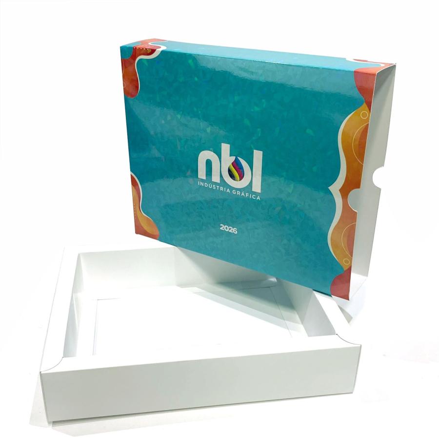Caixa com cinta personalizada — o toque que valoriza o presskit. A cinta envolve a embalagem com design exclusivo, destacando sua marca logo no primeiro contato. Além de elegante, é uma solução versátil e moderna para lançamentos, eventos e kits c